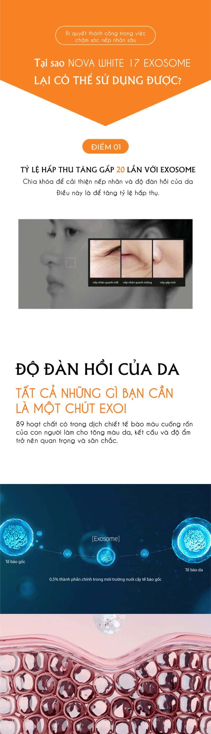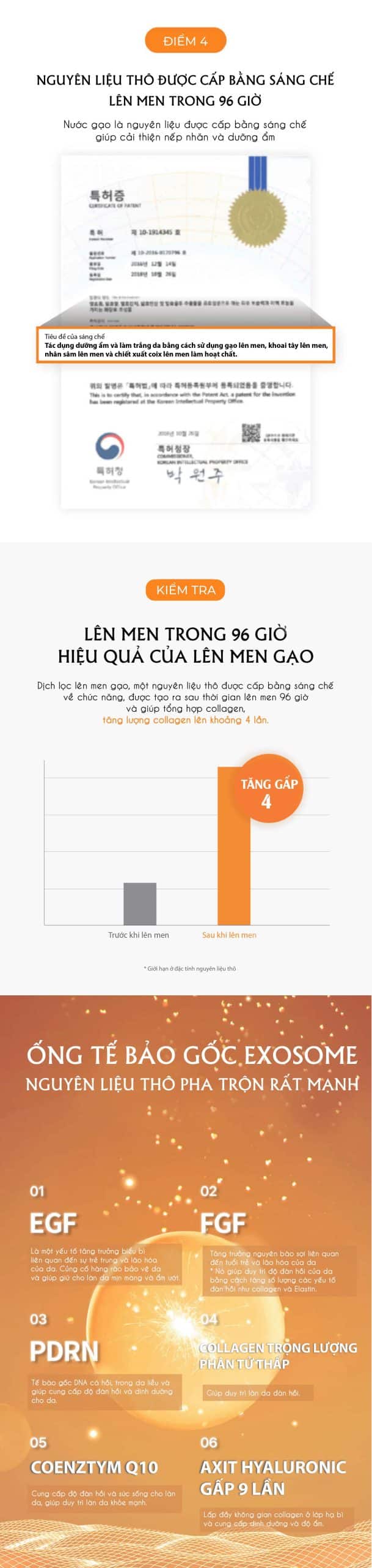 – Exosome (82 ppm): Công nghệ tế bào gốc giúp tái tạo da, sản sinh collagen, cải thiện độ đàn hồi.